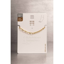 برند SIX معمولاً در طراحی پابندهای خود از زنجیرهای ضدحساسیت و مقاوم استفاده می‌کند. این پابند نیز از همین قاعده مستثنی نیست. زنجیر آن به گونه‌ای طراحی شده که در برابر تعریق، رطوبت و تماس با پوست، تغییر رنگ ندهد و دچار تیرگی یا پوسته‌پوسته شدن نشود. قفل محکم و قابل تنظیم نیز امکان تغییر اندازه پابند را فراهم می‌آورد تا برای انواع سایزهای مچ پا مناسب باشد. این ویژگی باعث می‌شود افراد مختلف بدون نگرانی از اندازه، بتوانند از آن استفاده کنند.