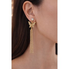 گوشواره آویز طلایی نگین دار روکش طلا برند TOSH